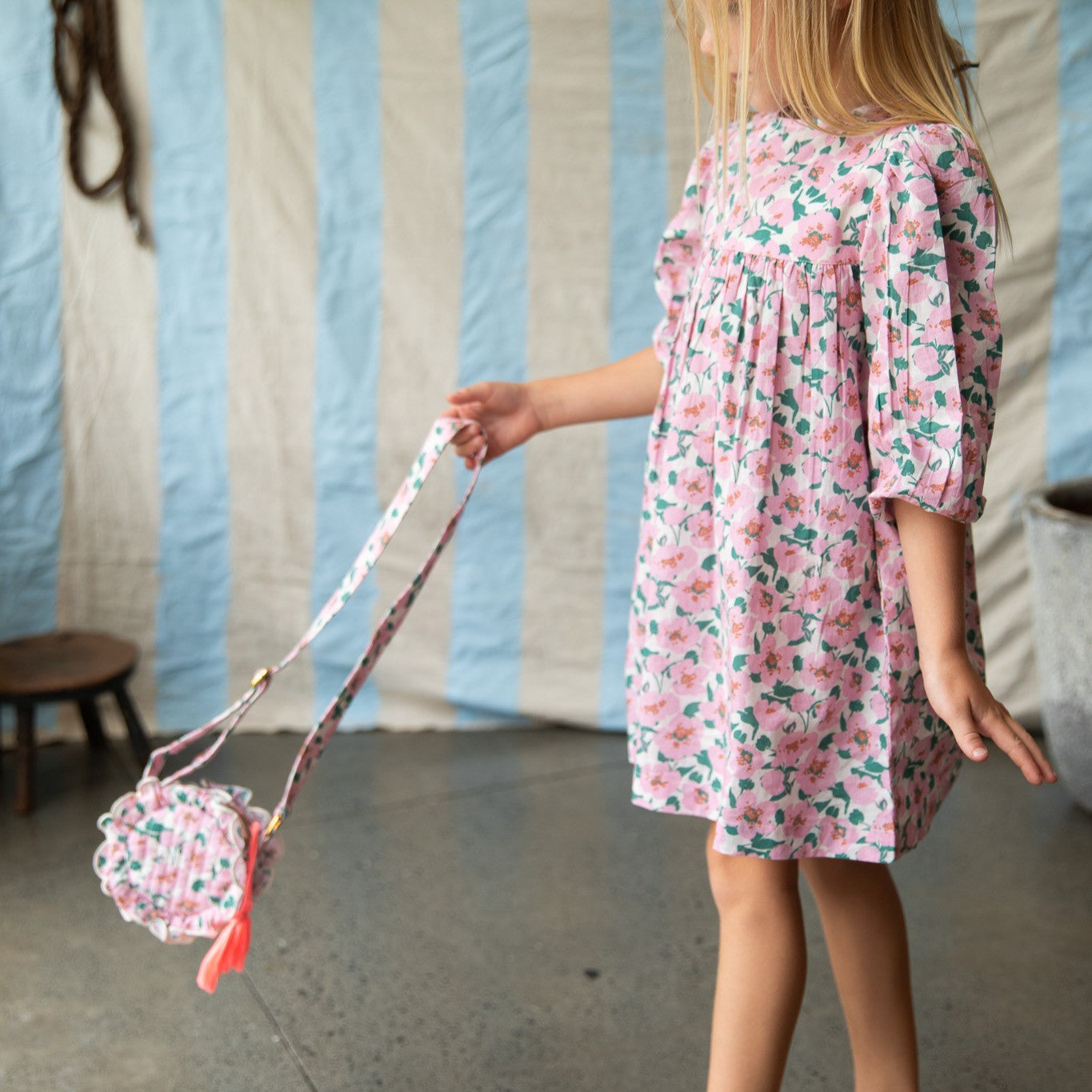 Make sure you have your pocket money handy or stash seashells and treasures from your big adventures. Bloom has a matching adjustable strap, gold zip closure and contrasting Fluro tassel.