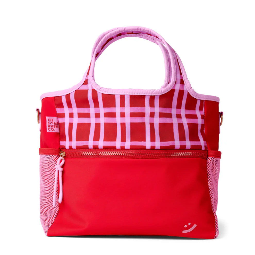 An adjustable, removable shoulder strap makes commuting hands-free and easy, while a super-strong magnetic closure keeps even heavier items—like glass containers and drink bottles—secure.