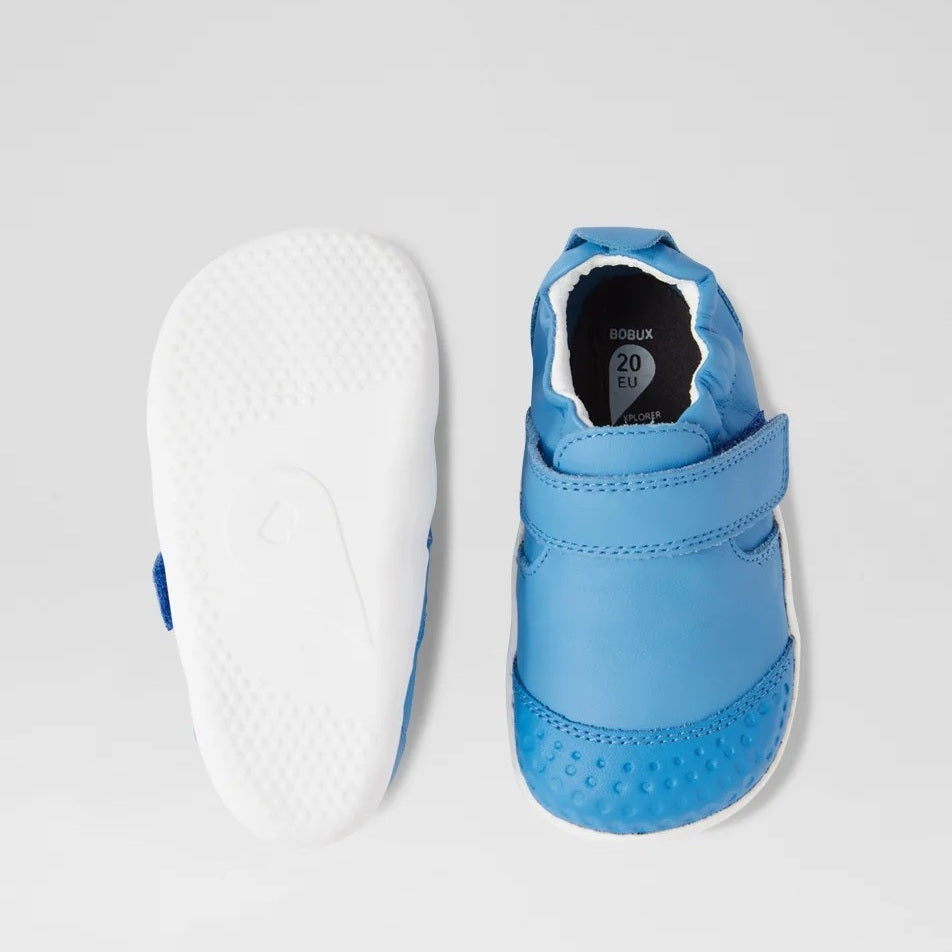 Crafted from premium, soft leather with a single strap fastening, the GO shoes are an easy-on and easy-off shoe designed for little cruisers. With an embossed leather toe cap to prevent scuffing and a super lightweight, flexible sole, there is no better option for crawlers and pulling-themselves-up kids than the iconic Bobux Xplorer Go.