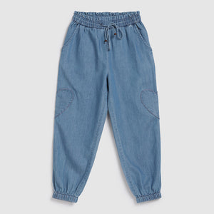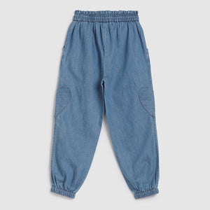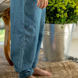 adventure.- Length 60cm (Size 6)- Lightweight chambray- Heart patch embroidered- Elastic waistband and rolled cuffs