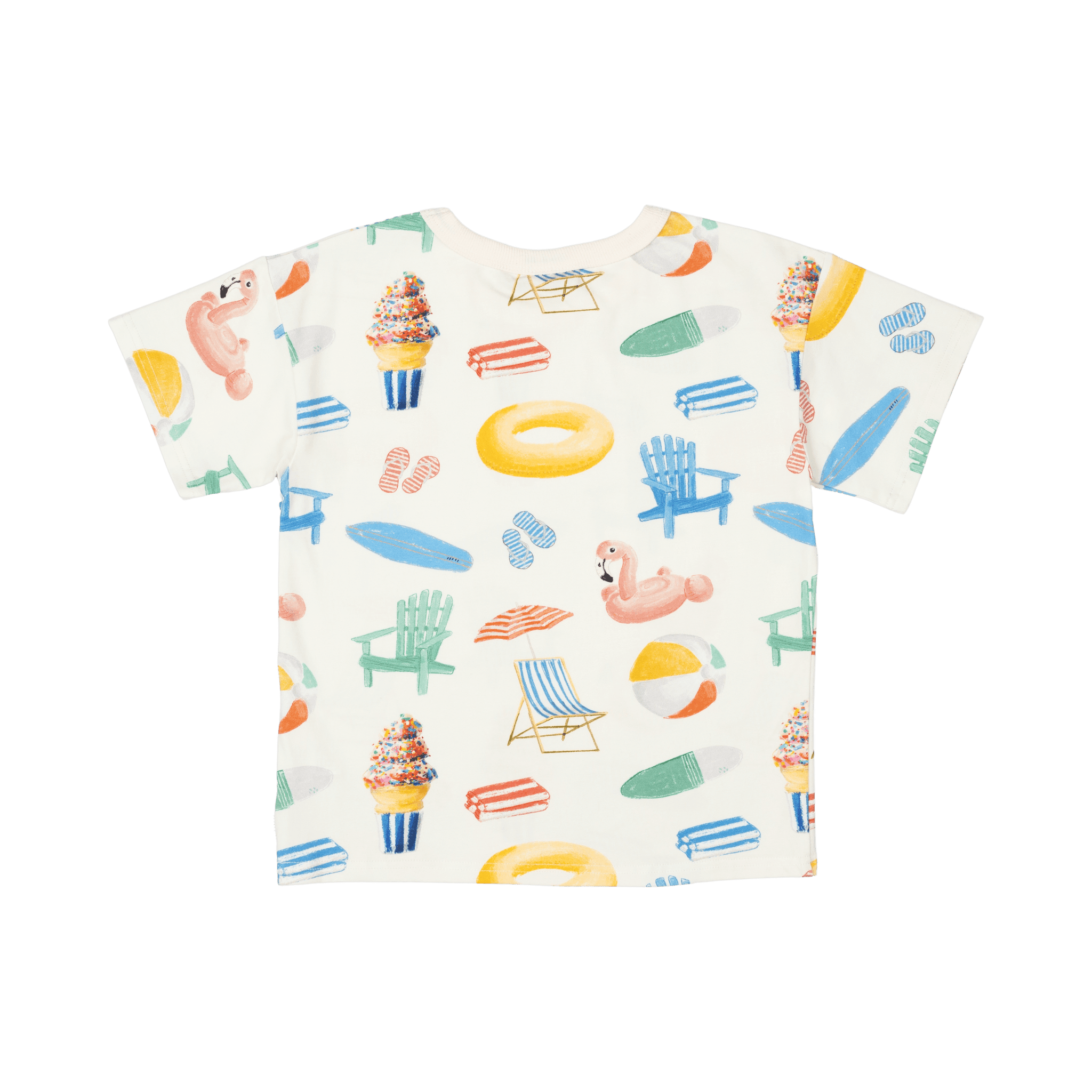 Introducing our Lifes A Beach T-Shirt! Made from 95% cotton and 5% elastane jersey, this t-shirt features cream ribbing across the neck, a boxy looser fit, and short sleeves.