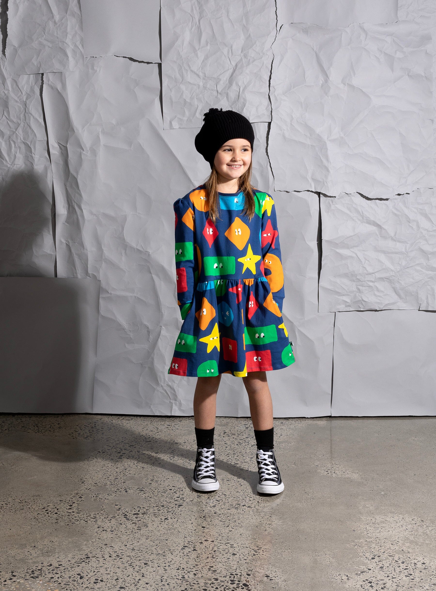 Fun easy wearing dress in a bright shape print and the best part ... pockets!