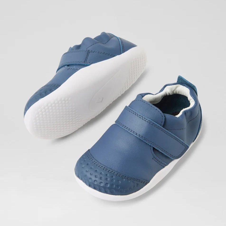 Crafted from premium, soft leather with a single strap fastening, the GO shoes are an easy-on and easy-off shoe designed for little cruisers. With an embossed leather toe cap to prevent scuffing and a super lightweight, flexible sole, there is no better option for crawlers and pulling-themselves-up kids than the iconic Bobux Xplorer Go. This shoe is suitable for crawlers and fits true to size.