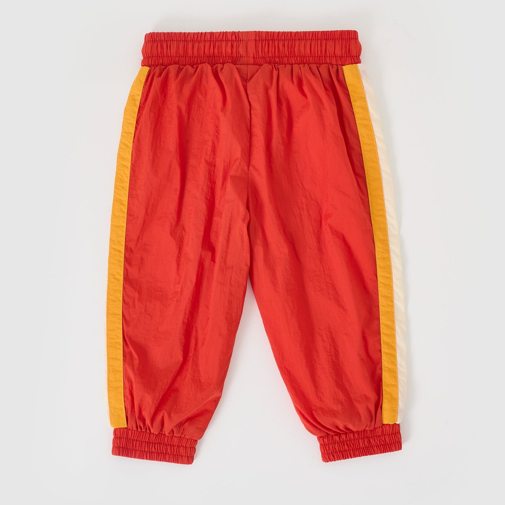 True to size. Lightweight, retro parachute style fabrication with cotton lining. Functional drawstring and pockets. Elasticated at the waist and ankle. Features contrast panelling on sides.