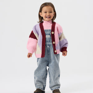 This chunky textured stitch cardigan in pink and purple offers a soft handfeel and features a button-through front. Designed in Australia by Goldie + Ace. Fabric composition: 80% acrylic, 20% wool, exclusive of trims.