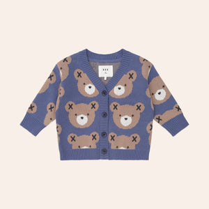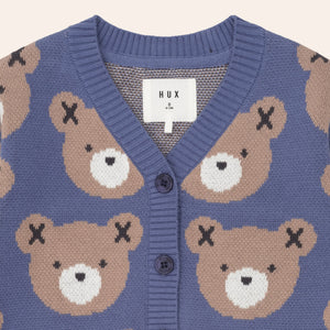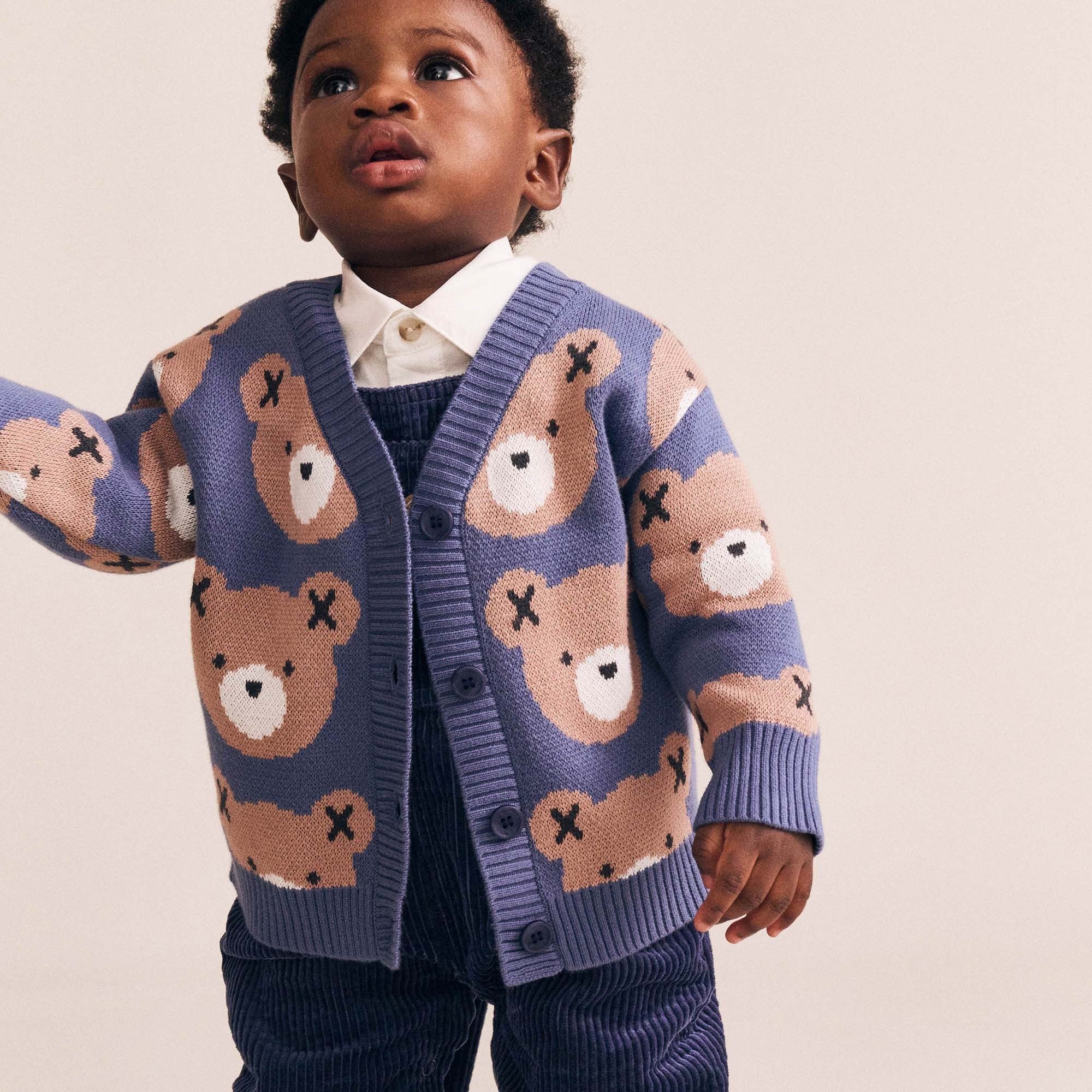 Meet the ‘wear everywhere’ cardi. This lightweight knit cardi is made from premium organic cotton in a deliciously soft jacquard knit. Featuring front pockets and our custom Huxbear print, it'll keep them snug as a bug—or a bear.