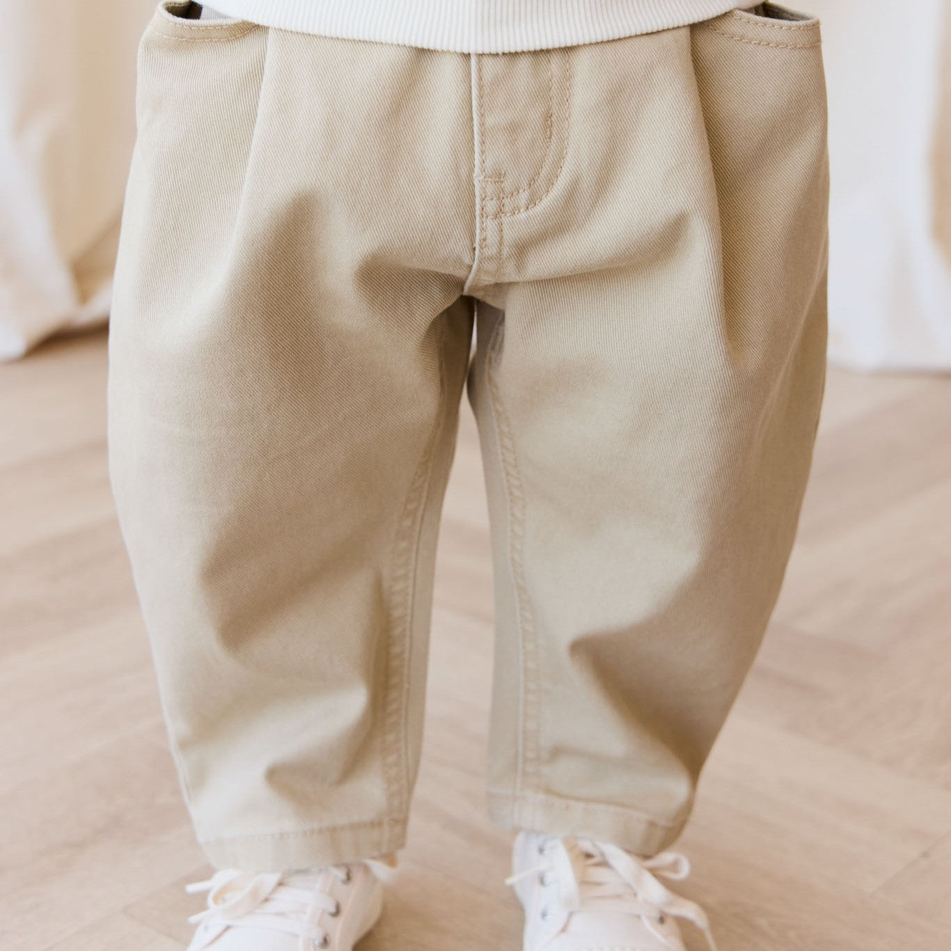 The Rueben Pant in Stucco is a beautifully classic piece for your little one’s wardrobe. With a relaxed fit, elastic waistband with button closure, and soft stretch, these pants are finished in a warm, earthy stucco tone – perfect for everyday wear and seasonal layering.