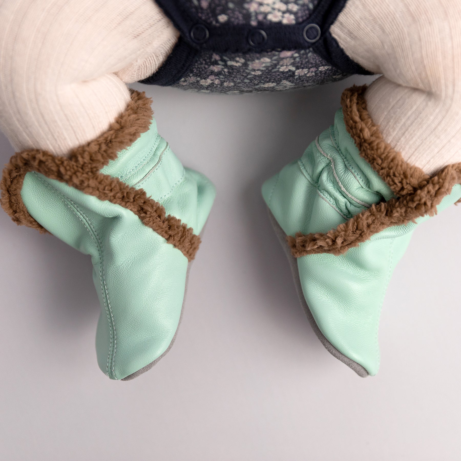 They also feature a suede leather outsole so they don't slip but are completely flexible and move with your little ones feet.