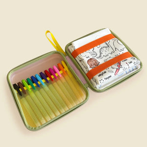 Thoughtfully designed to hold multiple HeyDoodle silicone colouring mats, this lightweight, zip-up case keeps everything organised and in one place. With space for your markers, mats and cloths, it’s perfect for travel, playdates, cafés or waiting rooms.