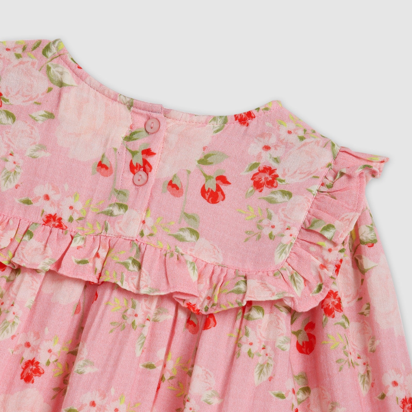and fresh.- Length: 40cm (Size 6)- Made from soft cotton gauze- Square neckline with ruffle trim- Elastic cuffs with cutest bow