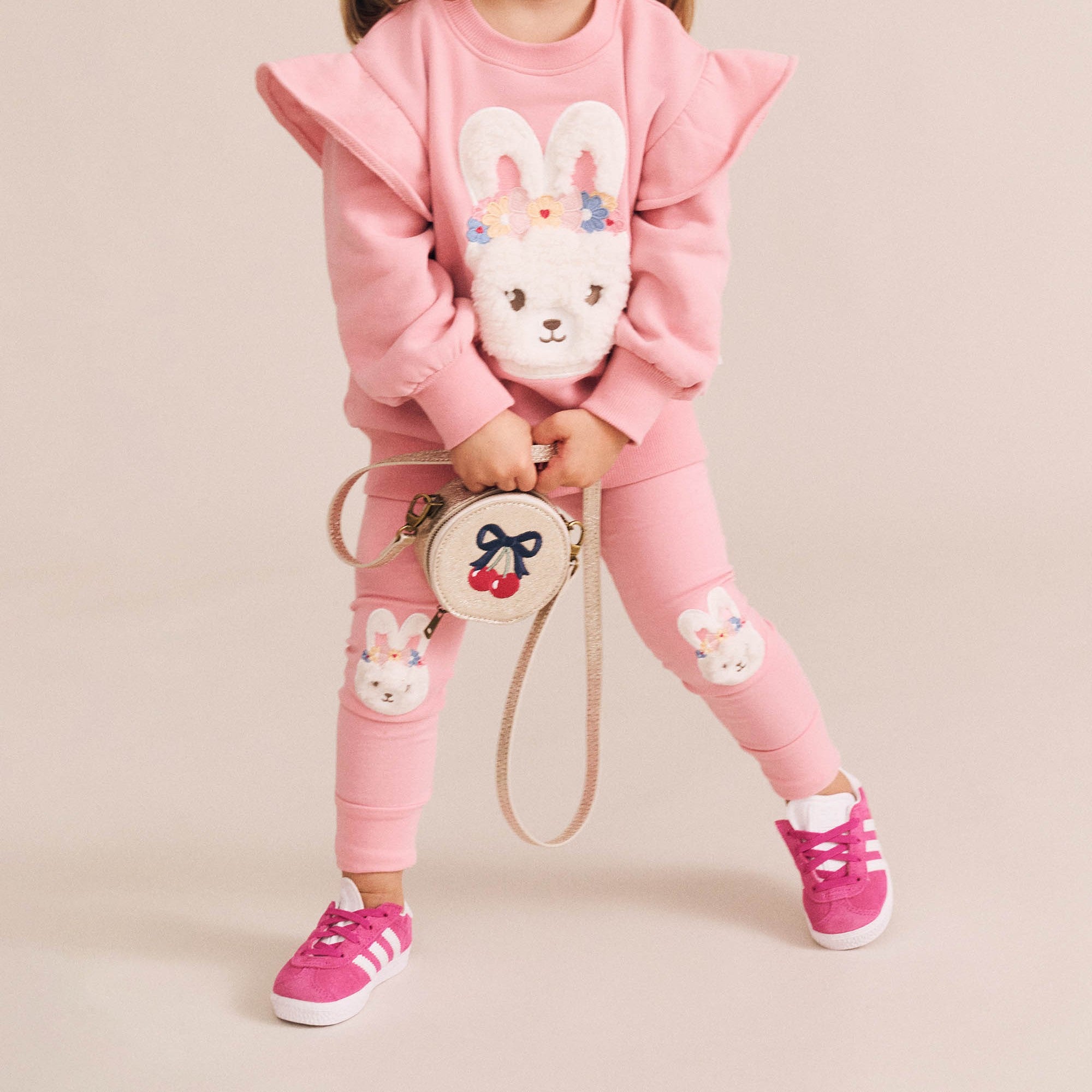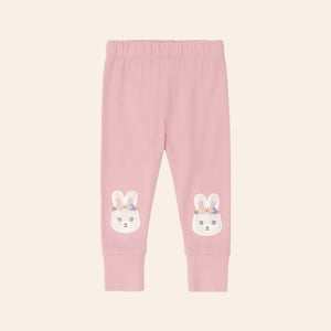 Cartwheel-worthy leggings. Made from soft organic cotton, they feature cute bunny knee patches. The soft stretchy waistband stays up (even mid-wheel) and keeps little tummies comfy all day long. Ideal for everyday wear.