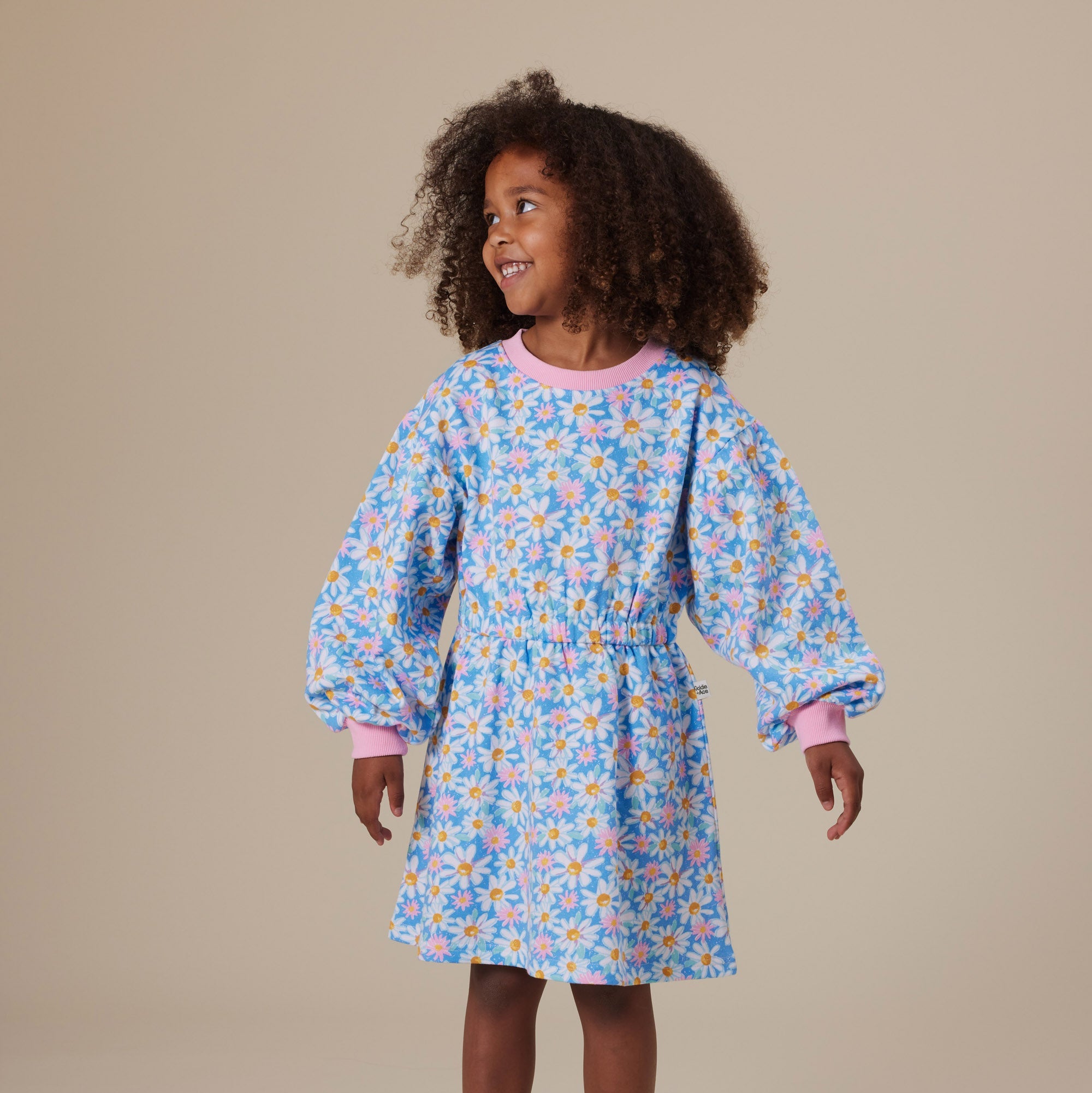 True to size. Balloon style sleeves. Ribbed cuffs and neckline. Elasticated at the waist.