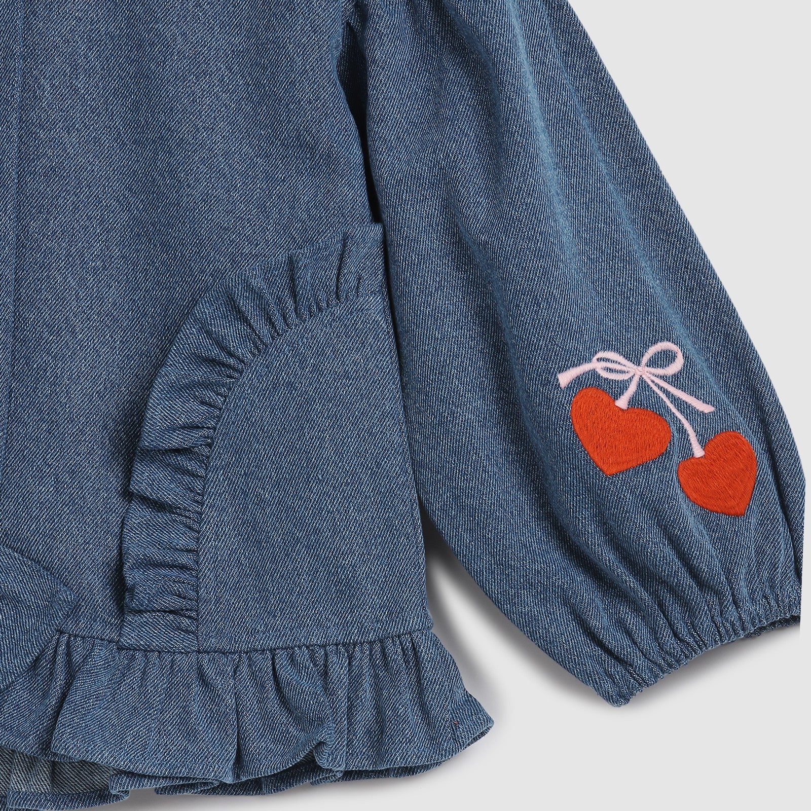 seamlessly from day to night.- Length 60cm (Size 6)- Made from sturdy denim fabric- Relaxed fit for comfort and style- Super cute design with frill details- Perfect for casual outings or layered looks