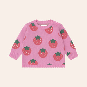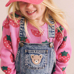 Meet the ‘wear everywhere’ sweater. This knit jumper is made from premium organic cotton in a deliciously soft jacquard knit. Light enough to layer and cosy enough to wear on its own, it’ll keep your little one snug as a bug in a strawberry field. Featuring shoulder buttons in baby sizes for easy dressing.