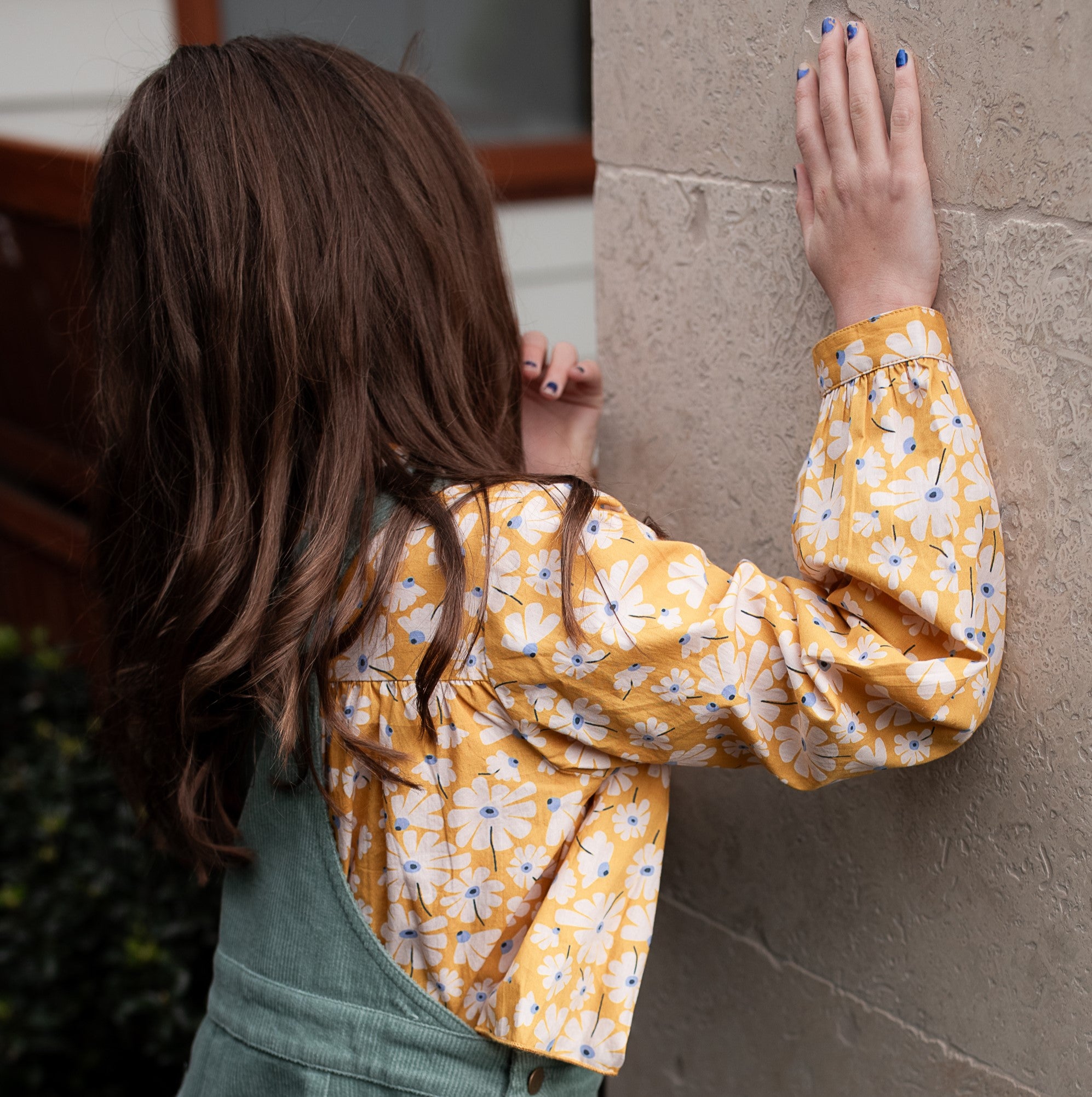 The sweetest shirt with frill and wooden button detail in exclusive honeysuckle print. Perfect to wear with our Lee Ruffle Skirt or under a pair of Cleo Overalls or Pinafore.