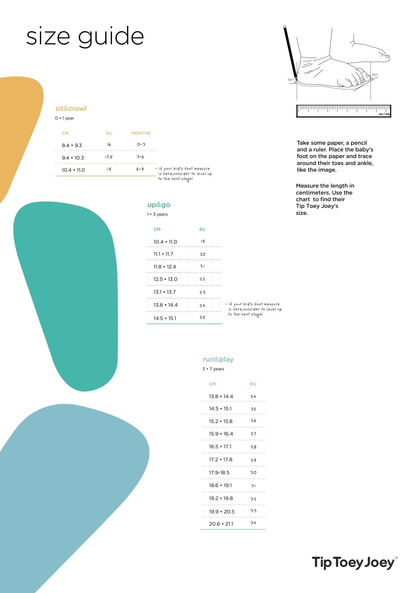 • Sizing of other brands are not a parameter for choosing your Tip Toey Joey.