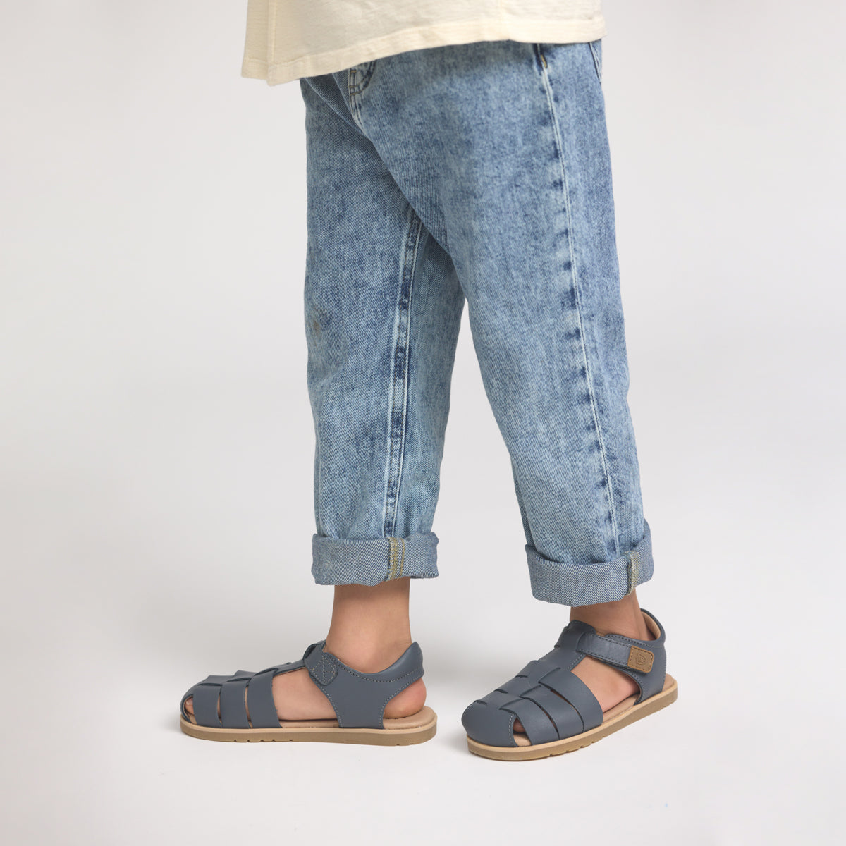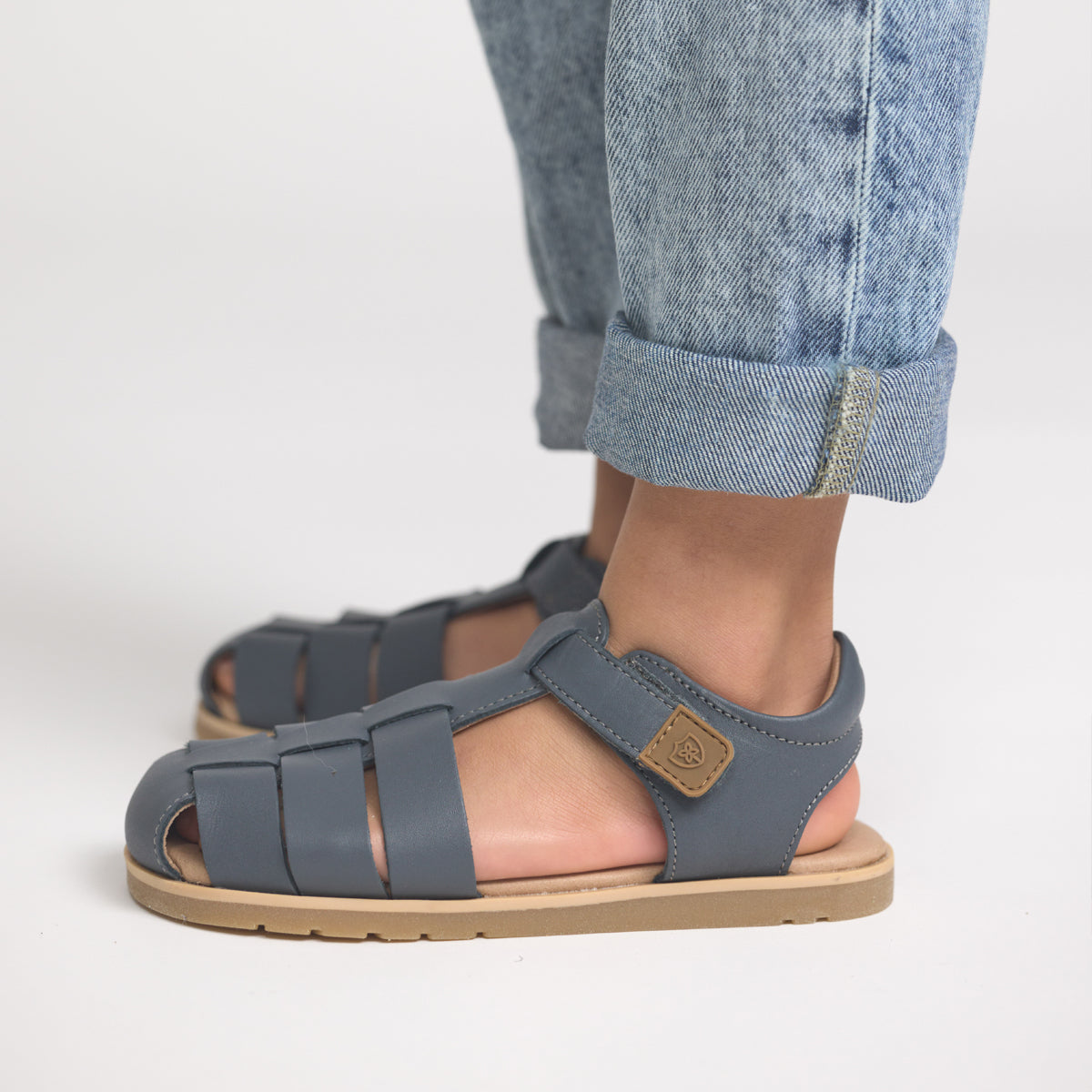 The popular Rocco sandal features classic straps with open sides and heel for airflow and breathability, plus a closed toe for protection, making it the perfect summer style for active kids. An adjustable velcro ankle strap and cushioned ankle provide comfort, while the seasonal colourways make it a great choice for both him and her. Classic cage sandal design