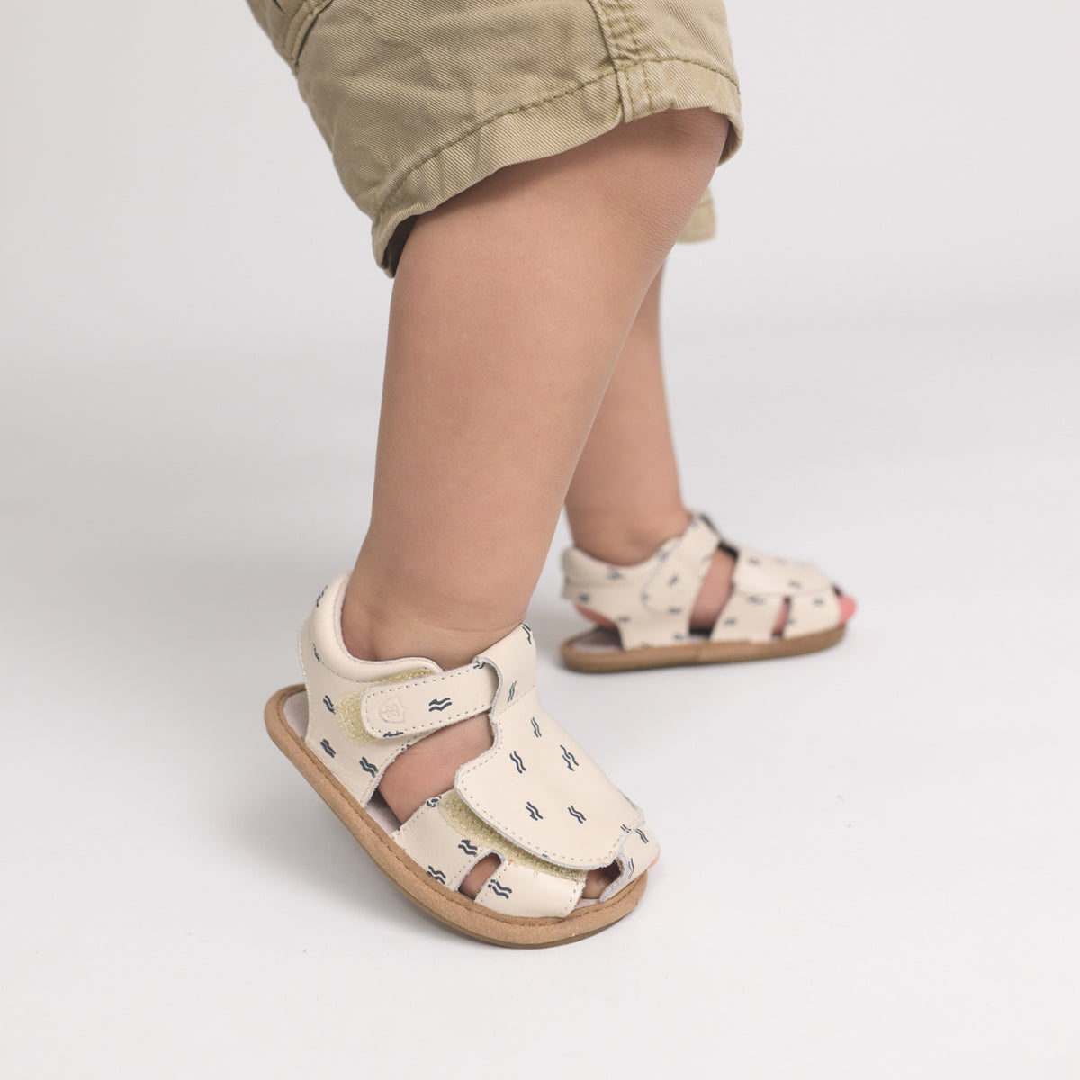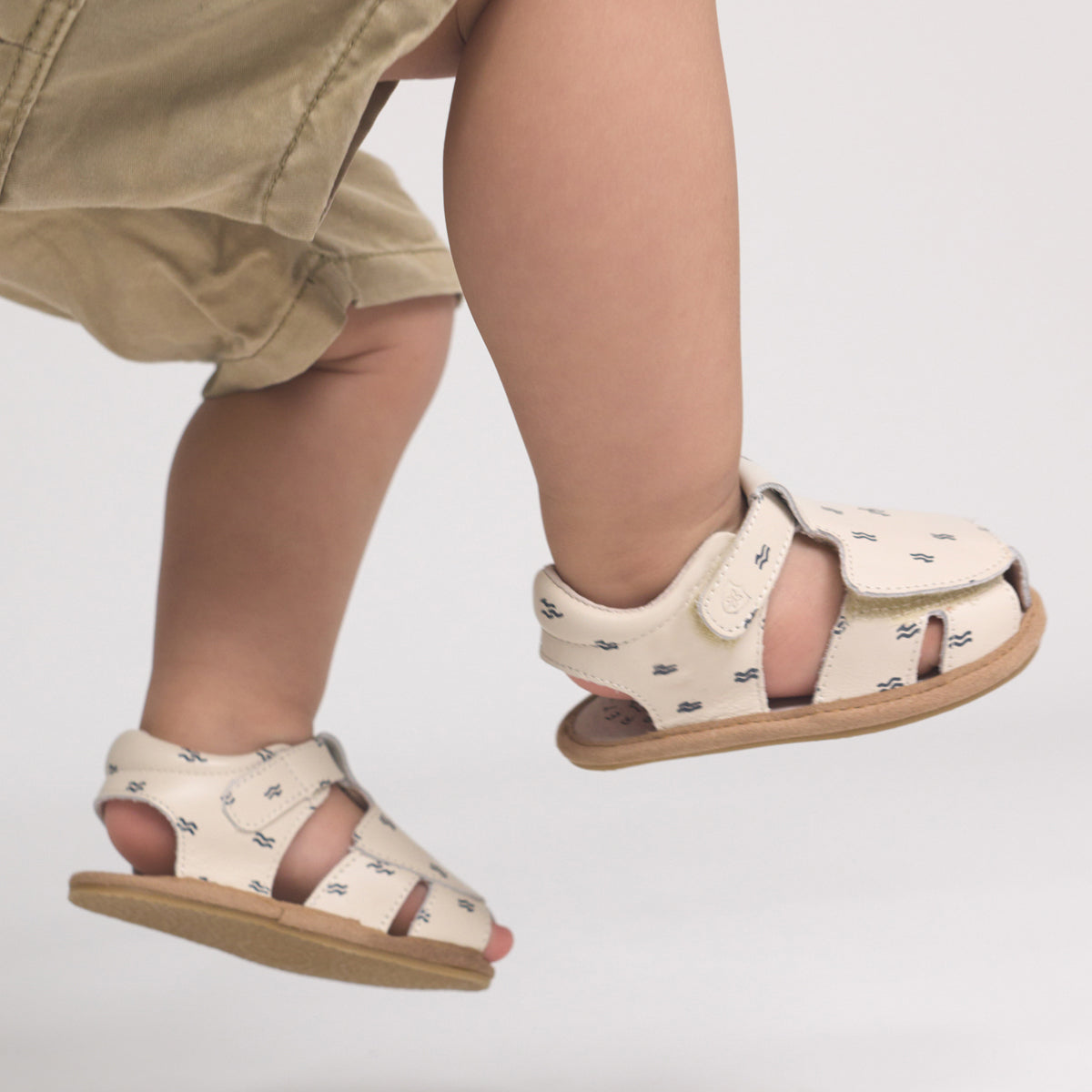 The super-cute Milo sandal offers full adjustability across the ankle strap and forefoot, while keeping toes covered for protection as little ones start to move. An open heel and padded ankle provide airflow, comfort and support, making it a perfect summer go-to. Hand-made from soft, natural leathers