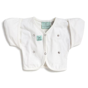 When your swaddled baby begins to show signs of rolling, it is time to transition them to arms-out sleeping for their safety. The Butterfly Cardi is designed to be a transition aid worn over your baby’s swaddle or sleeping bag, to help them transition to arms-out with minimal sleep interruptions and maximum sleep comfort.