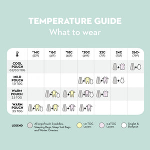 TOG rated – 1.0 TOG is designed for year round comfort when temperatures in your child’s room are between 21C° - 24C° (68-75F). With a TOG rated swaddle, you don’t need any additional blankets.