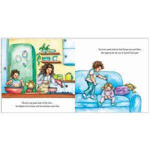 Chucky is a great little kid. He is good mannered, fun loving and into everything. But when he makes a mistake, or things don’t go his way, he tends to get angry and upset. With Dad’s help, Chucky learns the healing powers of having a good cry.