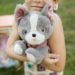Gizmo’s ultra-soft fur makes him the ultimate snuggle buddy if you're having a ruff-day or just need some puppy love! Gizmo has a secret obsession to treats, often enjoying a  magnetic bone.Gizmo comes ready to play, walk and snack, with a removable canvas harness, lead, and bone treat – because every good dog needs a treat, right!