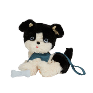 Made from soft recycled plush fabric with velvety ears to snuggle, Lucky is fully poseable and can stand, lay down, and even sit! Lucky's head moves and is embroidered with the sweetest doggy face, plus there's a rainbow surprise on one of Lucky's little paws! This little pup loves to carry a bone about!