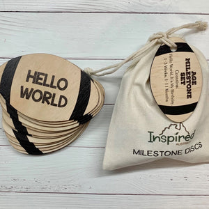 These wooden football shaped milestone discs are sure to appeal to any footy lover. Each set contains 14 discs; Hello World; one week, one - eleven months and one year.