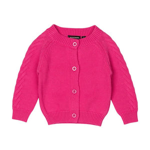 Top off any outfit with a cozy knit cardi! The Hot Pink Knit Baby Cardigan will be a staple piece for a cooler day!