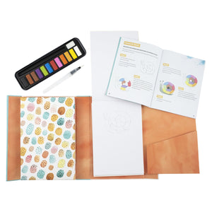 • Each set includes a full colour, 38 page painting guide, 20 watercolour pages, 1 x waterbrush, 12 x rich pigment watercolours (pan), 1 x small sponge for blending effects, 1 x mixing tray (palette)