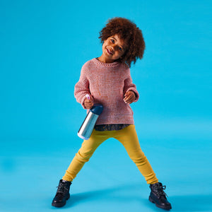 Drink bottle is leak-proof when lid is closed, rest assured no more soggy bags or library books! Simple press button to open. Soft silicone spout stays covered, clean and hygienic. Silicone strap handle lets kids easily carry their water bottle, and pull out of school and sports bags. And the sleek design appeals to older kids too. Wide opening for easy fill (and refill) with water and ice cubes. 500ml/16.9oz capacity. Dishwasher safe, top rack only.