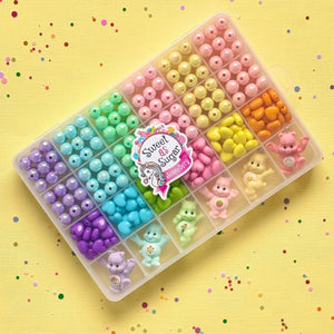 Such a fun vibrant kit Just imagine what you can make with this gorgeous jewellery making kit Comes with roughly 340 x 10mm beads 6 x Cute Rainbow Bear Charms Beading Elastic 1 x rectangle storage container ** Please Note: Colours may vary depending on your devices screen resolution. Bead and charm selection may vary pending availability.