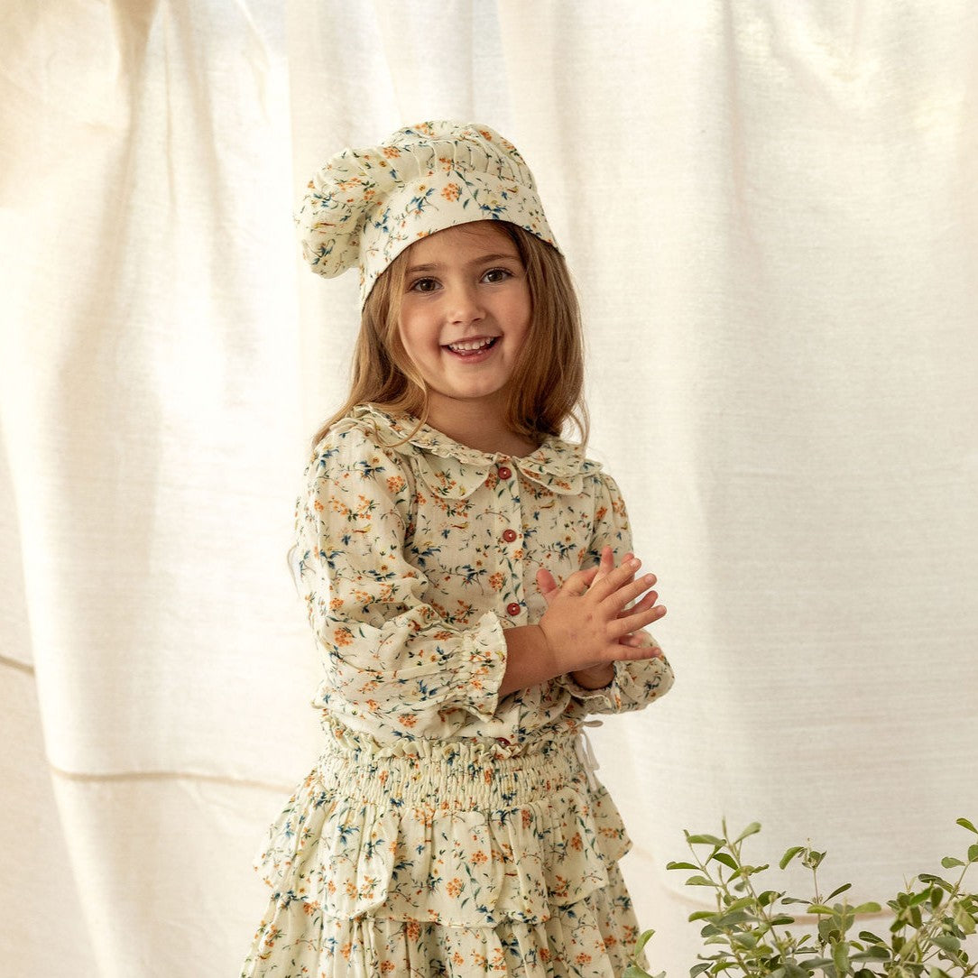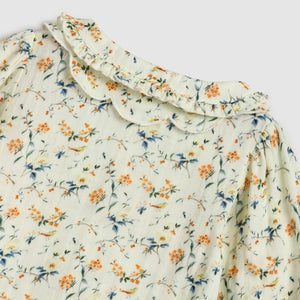 with skirts or pants.- Length 40cm (Size 6)- Soft cotton gauze- Super cute layered scallop collar- Button front closure- Long sleeves with delicate elastic cuffs