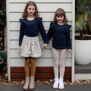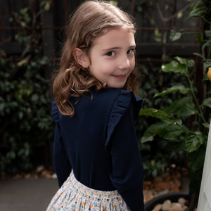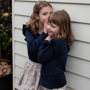 Gorgeous long sleeve top in a Navy. The pefrect essential top wear with any of our skirts or under the Cleo overalls or pinafore dress. Very soft and stretchy for comfort, made from 95% Cotton and 5% Spandex.