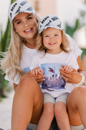 In a super on-trend repeat pattern, it's the ultimate everyday style to wear paired back with white, denim, swimwear... you name it. 100% unisex in fit and style, it's available in Baby/Toddler, Kids and Adult sizes.