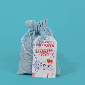 Unleash the magic with this Potion Accessory Pack! Packed with enchanting ingredients like mystical fizz powder, fluffy instant snow, and colorful potion pebbles, this set will transform your potions into magical brews.