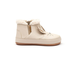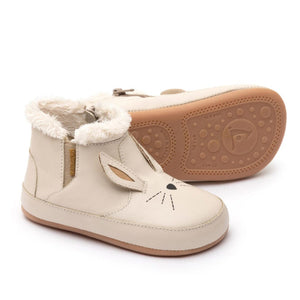 The Rabbit bootie will accompany babies in the first steps until they are ready to bounce like a bunny! lt has sewn-on ears and a plush detail on the shaft. With a zipper closure on the inside and elastic on the outside, it's safe for babies and easy on and off, letting the little toes splay freely - just like being barefoot!