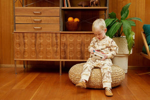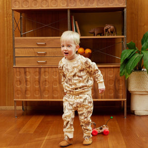 Add a touch of wild to your wardrobe with our Rajah Fleece Sweater. Soft and cozy, this cream-colored sweater features tonal earthy toned leopards for a playful and stylish look.