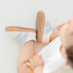 Meet Scout – the cutest little trainer in town! Featuring double velcro close straps that allow for a large opening, Scout is the perfect baby shoe for slipping on wriggly little feet and securing in place. With a padded collar, back pull tab, and cute feature contrast runner, the Scout trainer is the coolest addition to our Baby Range this summer.