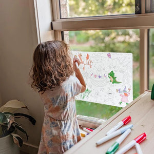 Colour your way around the disco floor with your favourite magical characters in our ‘Everyone’s Invited’ reusable colouring mat. Everyone is invited to bring their creative flair to the party where a majestic unicorn, graceful fairy, roaring dragon and wicked witch, all groove to the beats of DJ wizard to celebrate inclusivity.