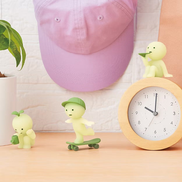 The lineup features 6 kinds + 1 secret figure and includes “SMISKI Sing-Along” who sings and plays guitar, “SMISKI Sunbathing” who naps in the warm sun with a furry friend, and “SMISKI Skateboarding” who’s ready for fun on the go.
