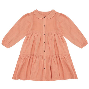 The ideal dress for garden wandering and wildflower gathering. It’s all in the details, “Sparrow” has a darling Peter Pan collar and tiny wooden buttons sewn with fluro thread. Double gauze is perfect for Layering with knitted leggings and “Minty” knit jumper